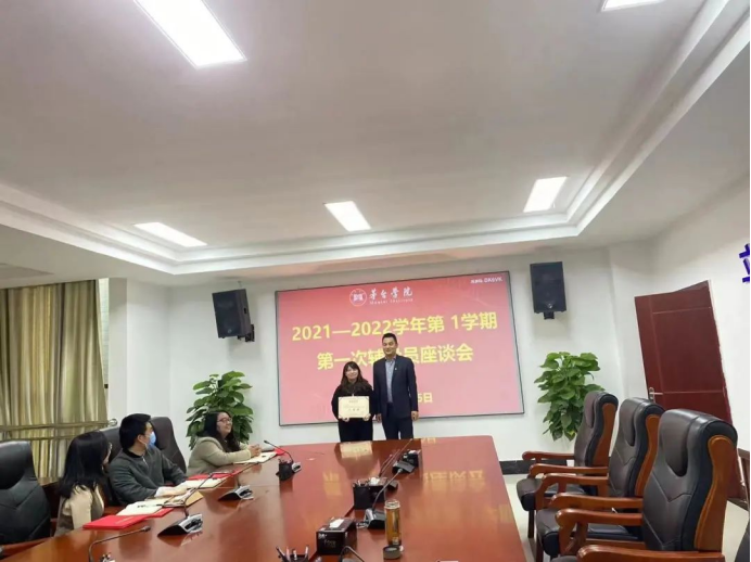 11月5日下午3点,2021-2022学年第一学期第一次辅导员座谈会在行政楼二楼会议室召开,学生工作部(处)处长陈岚、副处长黄训星、和学生工作部(处)相关人员、全体专职辅导员参加了此次座谈会。