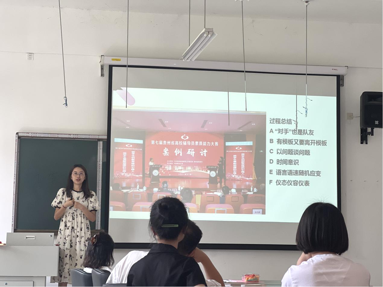 会上,学校第七届贵州省高校辅导员素质能力大赛一等奖获得者刘旭波老师讲解和分享了辅导员素质能力大赛赛程和参赛经验,为即将开展的辅导员素质能力大赛赋能。