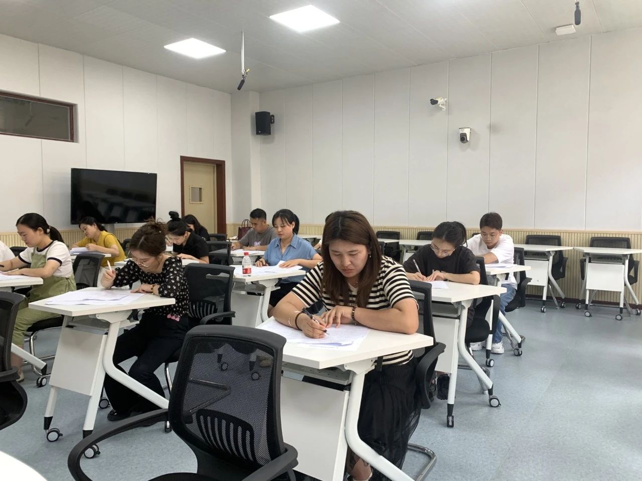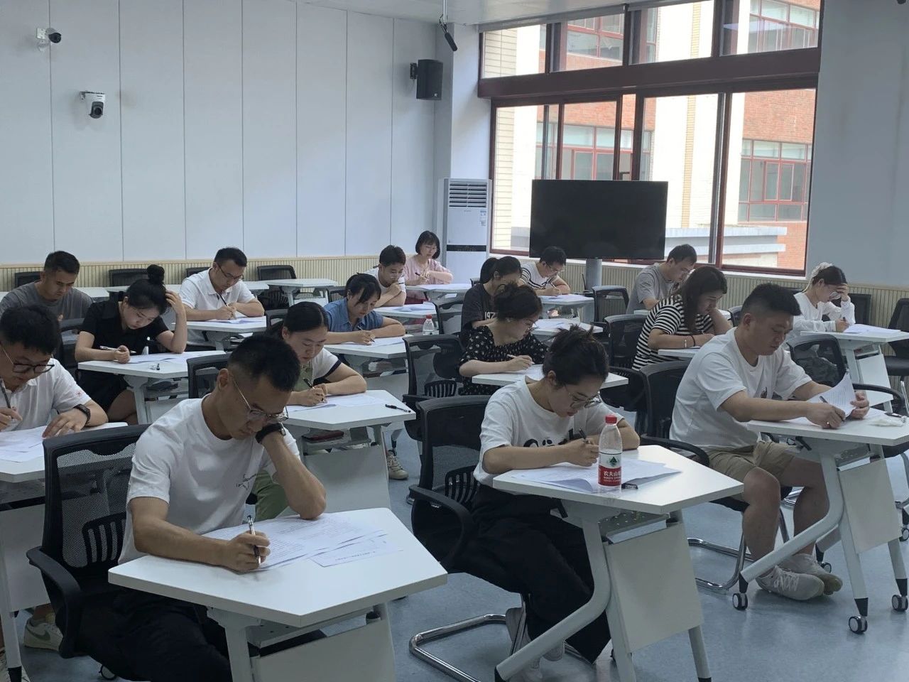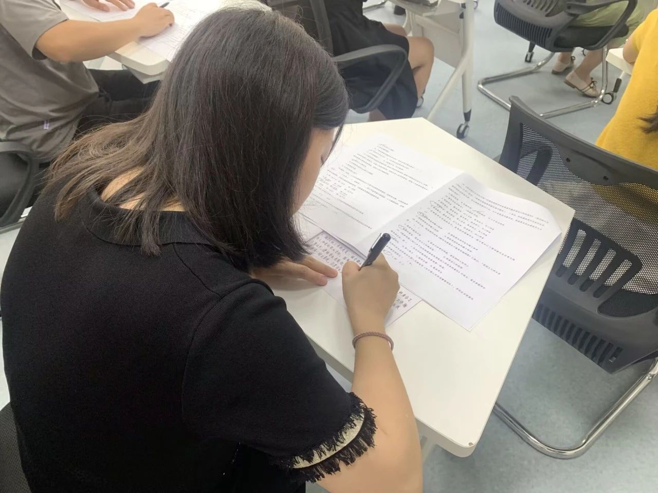此次比赛分为基础知识测试、案例研讨、谈心谈话三个环节。基础知识测试环节以闭卷的形式进行,主要考察辅导员理论素养和业务知识,辅导员们认真思考,沉着应考。