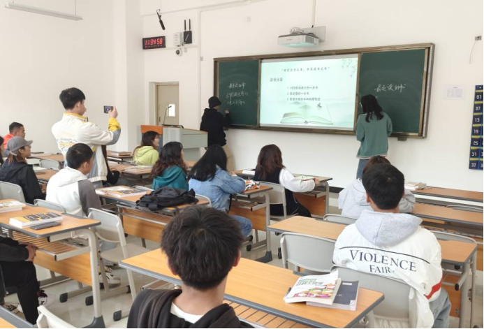 食品科学与工程系通过朗诵和演讲的形式激发同学们读书的兴趣;资源环境系王贤晨老师召开考研动员会,鼓励同学们更多地走进图书馆,多读书,读好书,读专业书,以饱满的精神状态开启自己的考研征程;酿酒工程自动化系通过好书分享、文字游戏、传统文化电影展播、诗词鉴赏等形式让同学们开启多维度的思想旅程,丰富了主题班会的内容和形式,游戏环节中,各班级通过诗词填空、瞬间记忆、成语接龙、心有灵犀一点通以及“谁是卧底”等游戏方式,将知识和游戏融合,让大家在游戏中学习知识、领会知识、巩固知识。