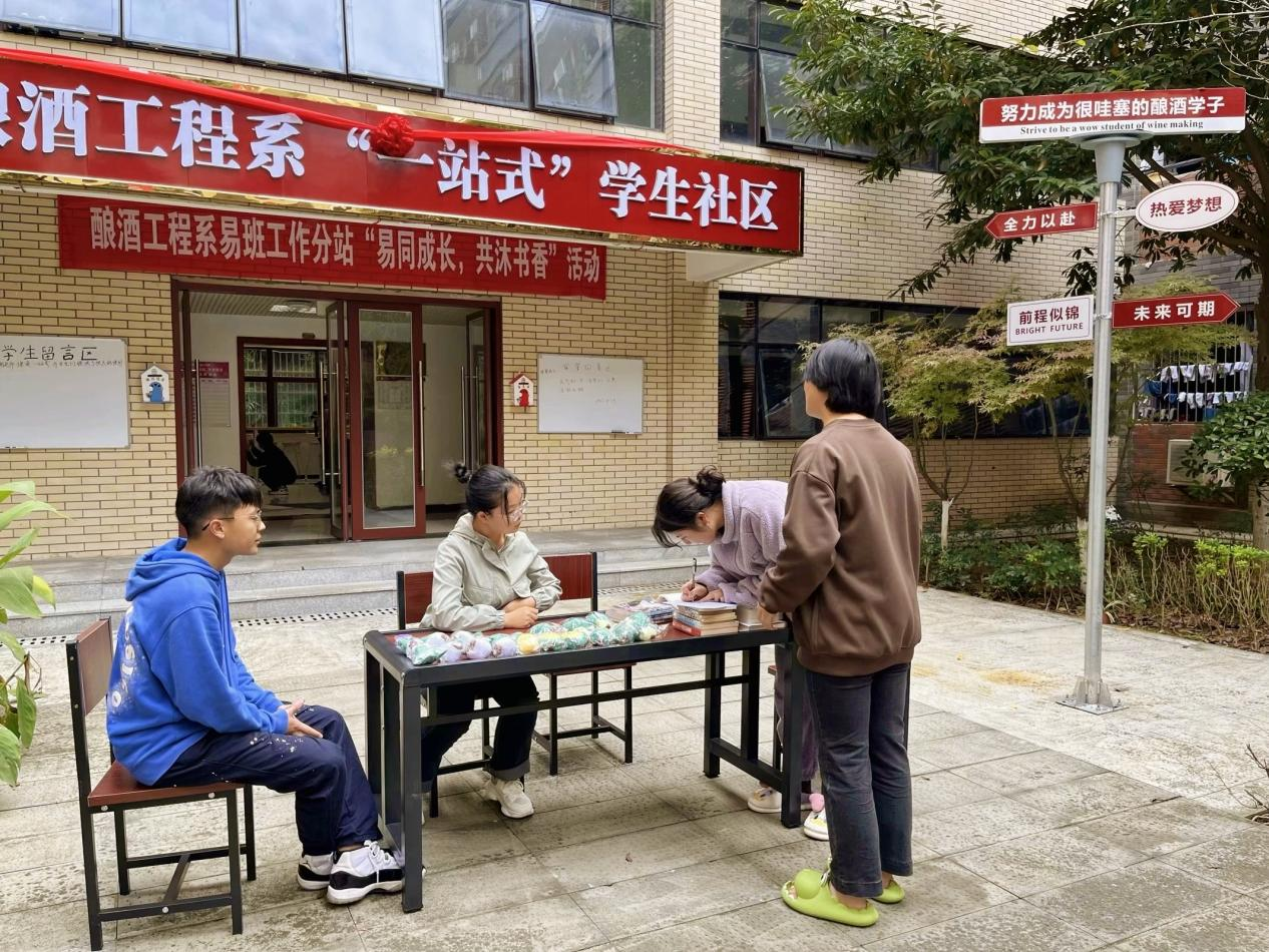 秋风正飒爽,书香满茅院。书籍,是人类精神财富的载体。为了实现旧书再利用,倡导低碳生活理念,引导学生博览群书,培养乐于奉献的精神,酿酒工程系易班分站于10月29日在酿酒工程系“一站式”学生社区举办了“易同成长,共沐书香”图书捐赠活动。