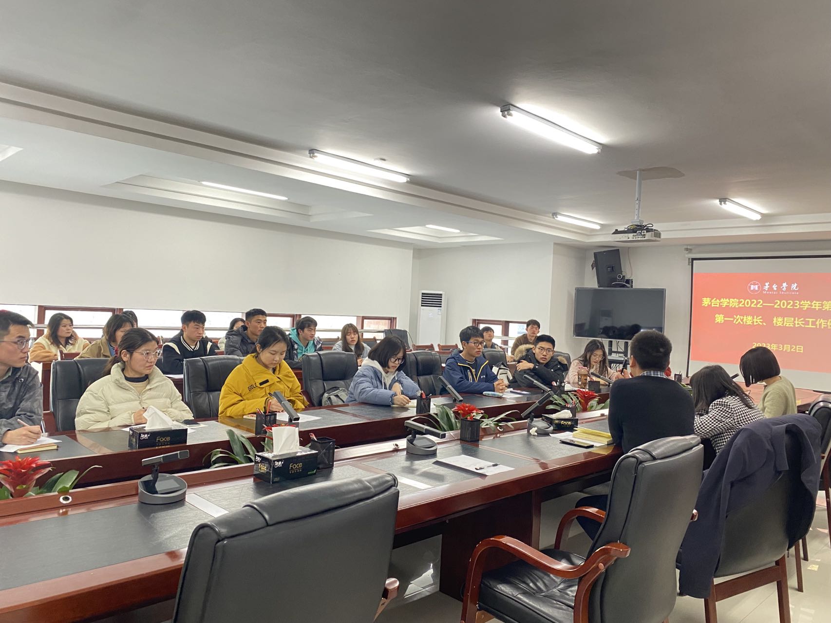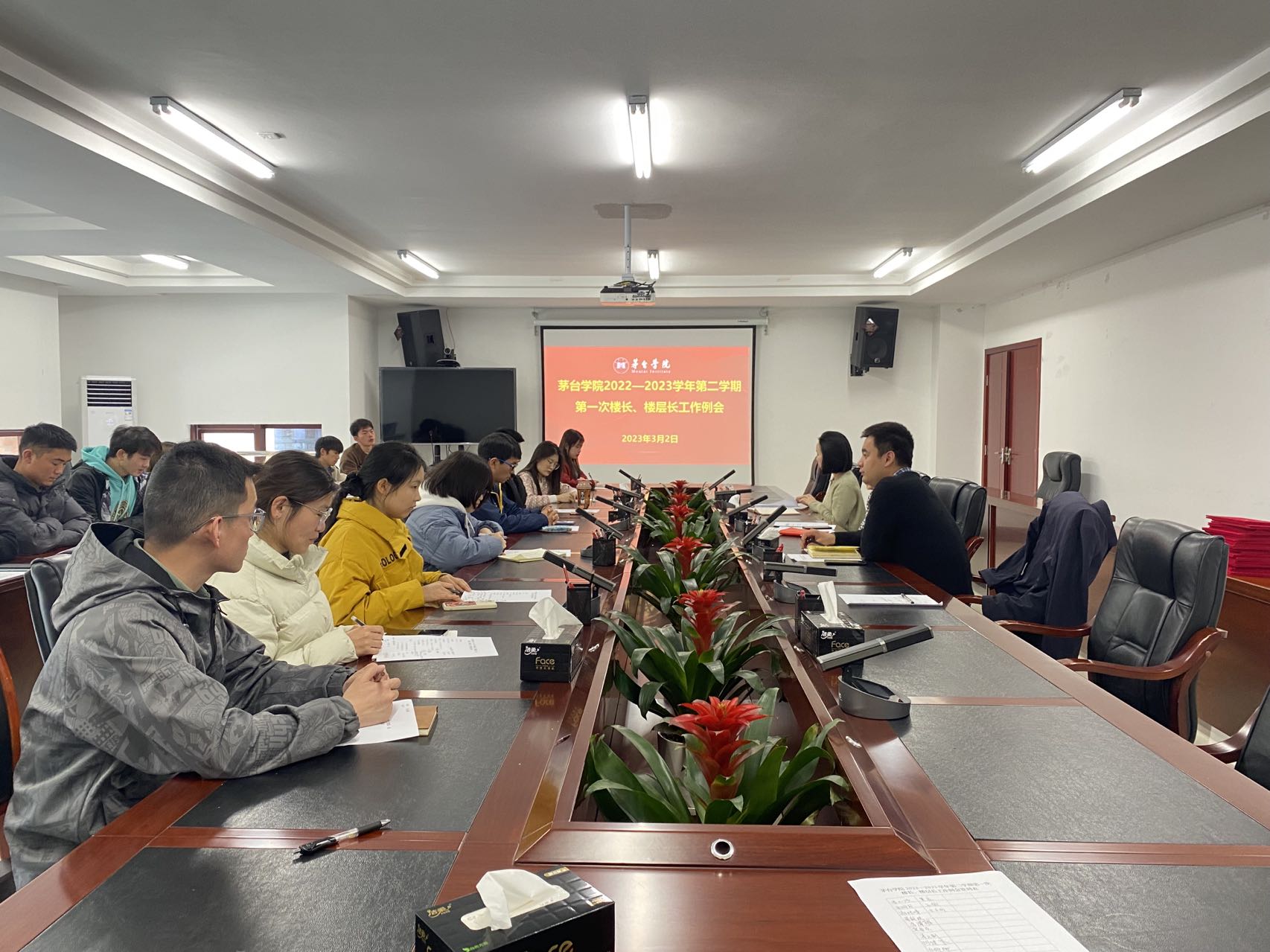 为了解学生寝室情况及学生需求,掌握新学期学生思想动态,进一步推进学生管理工作精细化、高效化,3月2日,学校在行政楼三楼会议室召开2022—2023学年第二学期第一次楼长、楼层长工作例会,学生工作部副部长陈岚、党委保卫部、人民武装部部长黄训星、学生工作部相关人员、全体楼长、楼层长参加会议。会议由陈岚副部长主持。