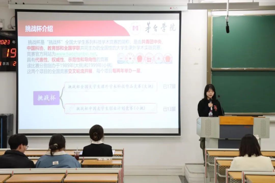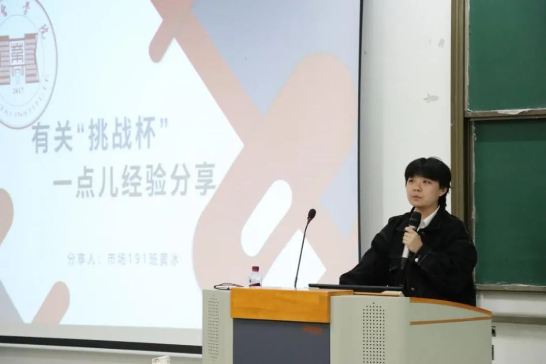 胡雨婷同学详细地给同学们介绍了“挑战杯”这一竞赛的规定与要求,希望各位学弟学妹们能够抓住机会,积极参加创新创业类赛事,并从中有所收获。
