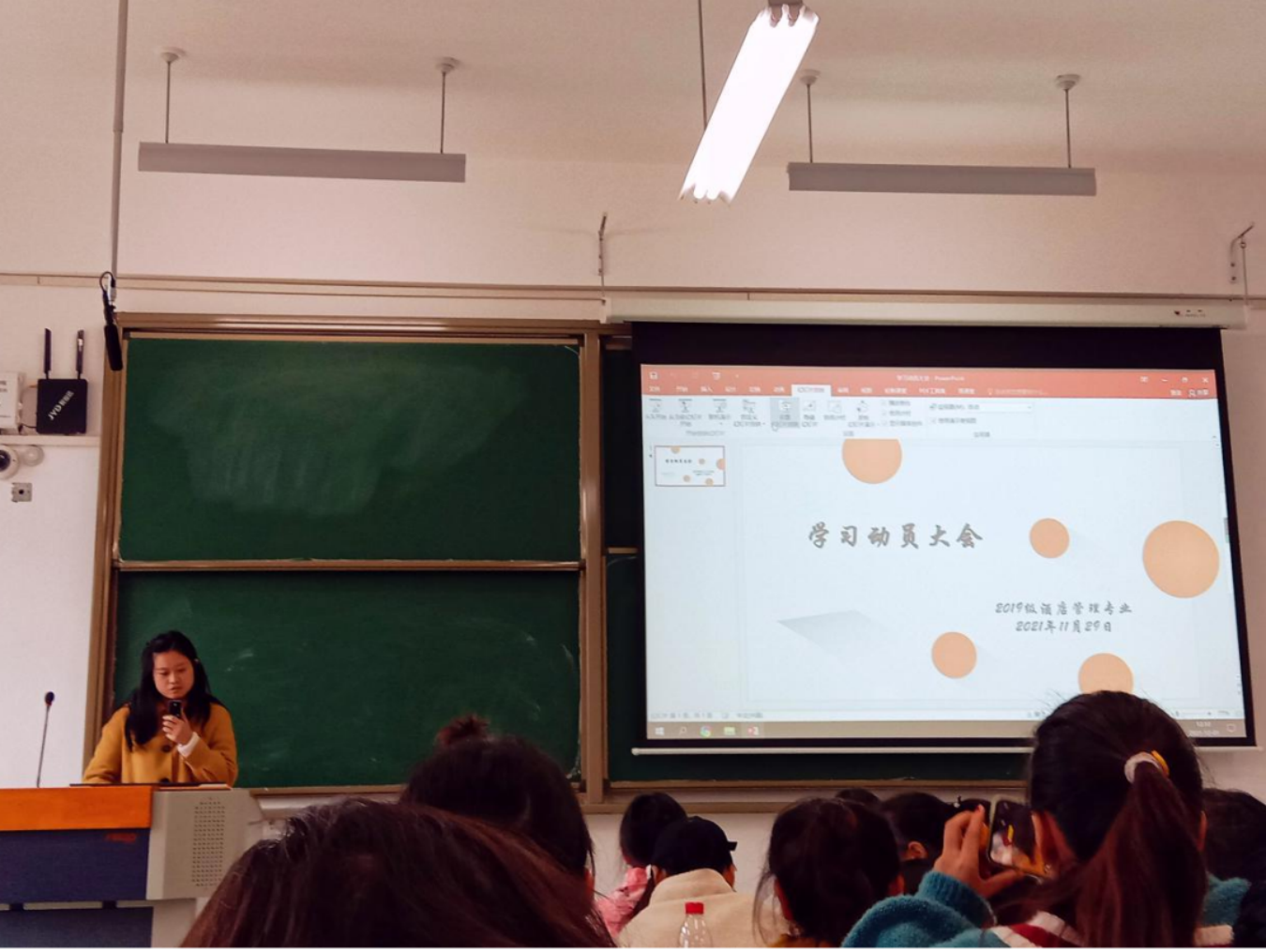 二、开展2019级实习动员大会。为引导同学们做好顶岗实习前的各项准备,确保实习工作顺利开展,旅游管理系为2019级酒店管理专业举办了实习动员大会。会上,郄广平老师、卜建东老师和王智老师等为同学们解析了实习的必要性,指明了实习对锻炼同学们的社会适应能力、顺利择业就业的影响。通过本次动员大会,同学们更加深刻的认识到实习的重要性,明确了实习的方向和目标。