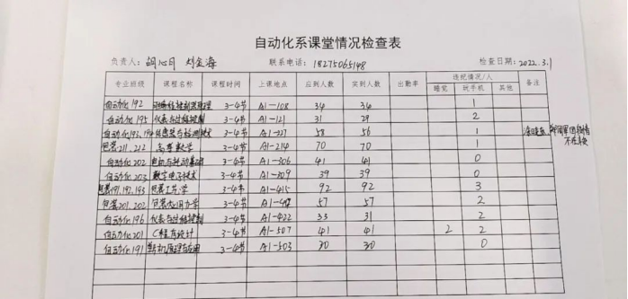 酿酒工程自动化系紧紧把握“围绕学生、关照学生、服务学生”的总体要求,学生干部坚持每周深入课堂,开展学风查课活动。认真且公正的对学生上课的出勤情况、纪律情况、学习氛围等进行检查。严格的查课帮助同学们养成不缺勤、不迟到、不早退,珍惜时间,加强自律的好习惯,营造良好学风。有效助力学院学生工作的开展,为学院教风和学风建设奠定良好基础。
