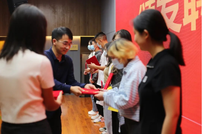 仪式上,金文俊老师为此次招聘的思政助理、辅导员助理和“三长”代表颁发了聘书。