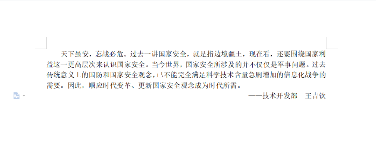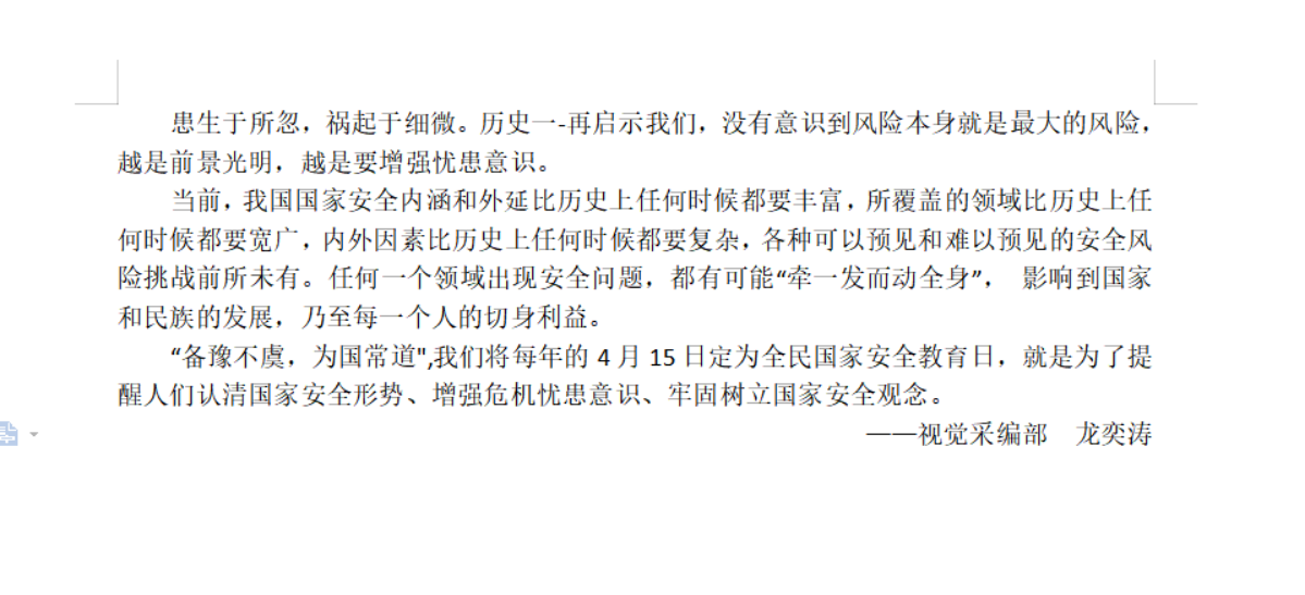 作为当代青年大学生,应时刻将国家安全置于心中,坚决不做任何威胁国家安全的事情,坚决抵制任何有可能威胁国家安全的人或事;作为学生干部,更是应该发挥带头作用,从自己做起,牢牢守住国家安全四个大字!