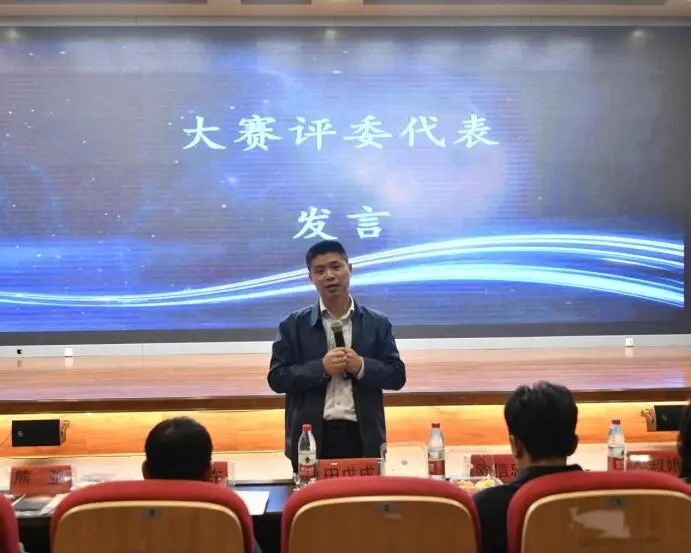 旅游管理系党支部书记欧信忠老师对本次比赛致辞。模拟讲解员比赛旨在鼓励同学们深入研究酒文化,提升科研能力和实践能力。