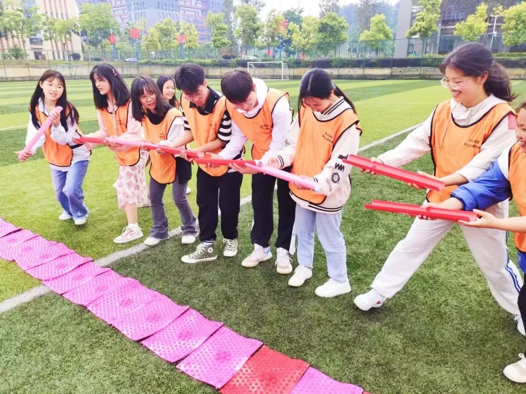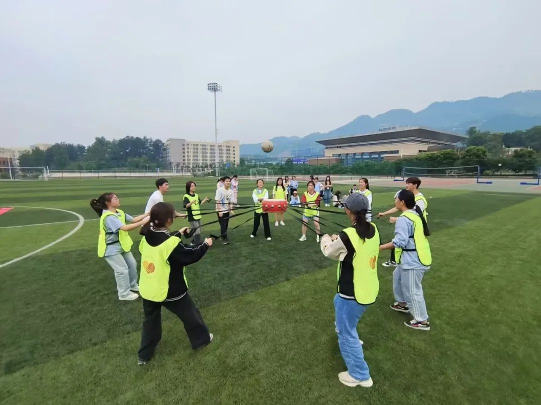 活动伊始,主持人向营员们介绍了活动背景及活动内容,讲解了活动规则及注意事项,营员们自由组队,参与了“鼓动人心”“接力袋鼠跳”“能量传输+指压板”“背对背合作运球+哆啦A梦投球”四个团体游戏,大家互相配合、相互鼓励,在轻松愉悦的氛围中体验团队合作的乐趣和力量,在群策群力、全力以赴中释放青春活力,在克服困难、团队协作中展现青春风采。