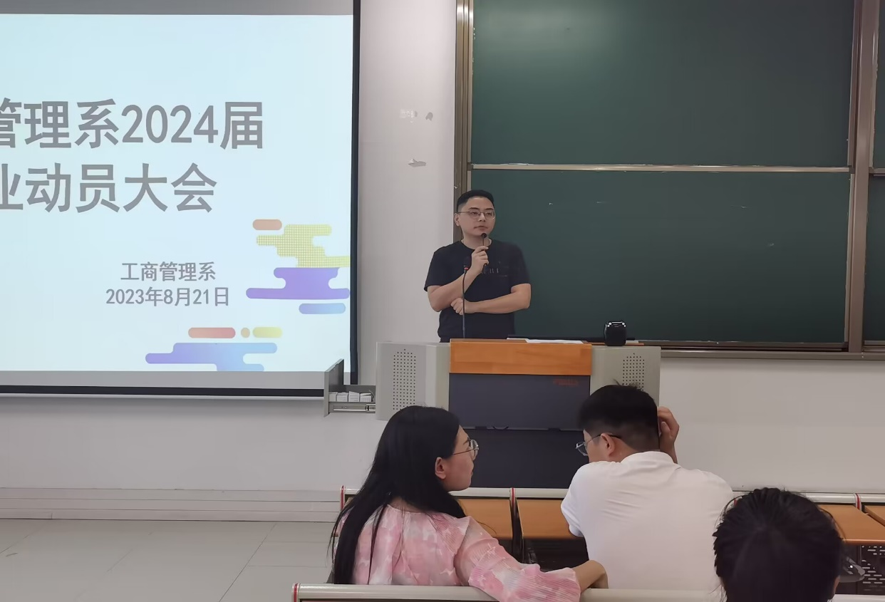 为扎实推进2024届毕业生就业指导与服务工作,帮助毕业生了解就业形势,把握就业机会,做好职业与人生规划,2023年8月21日,工商管理系召开2024届毕业生就业动员大会,本次大会由工商管理系党支部书记、系主任童俊,工商管理系党支部副书记吴鹏西,工商管理系副主任马青,各教研室主任出席。