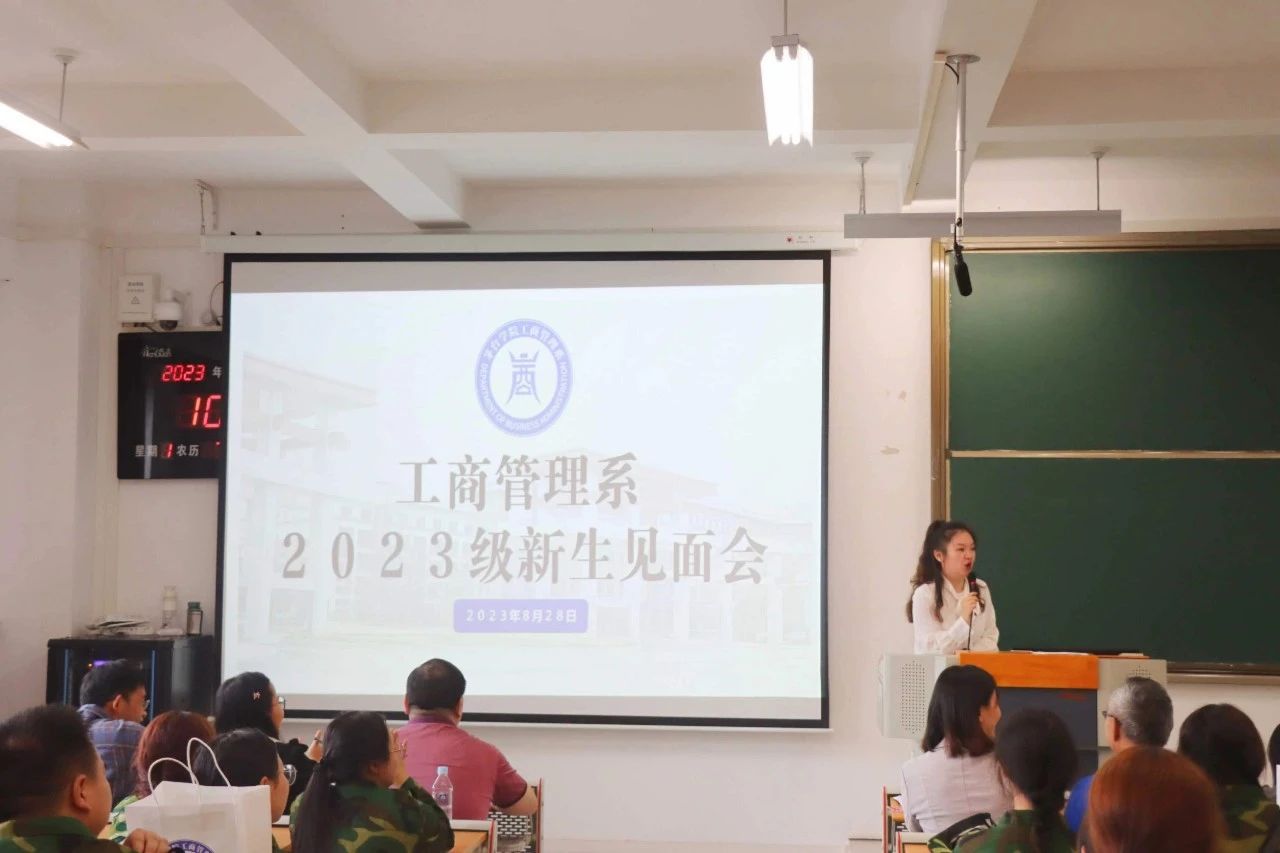 8月28日,工商管理系召开2023级新生见面会,本次会议由工商管理系2023级辅导员赵媛媛老师主持,工商管理系党支部书记、主任童俊老师、工商管理系党支部副书记吴鹏西老师、工商管理系副主任马青老师以及工商管理系教师代表出席见面会。