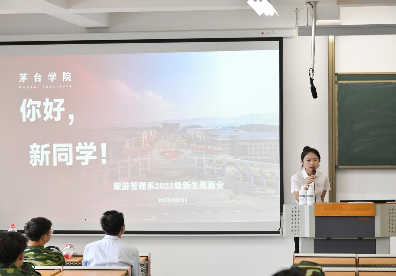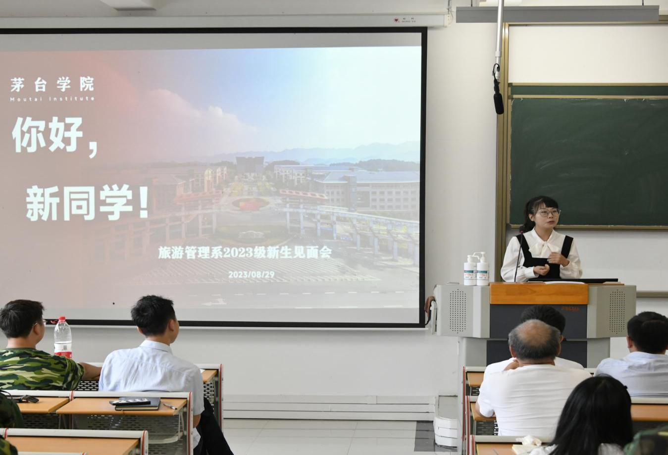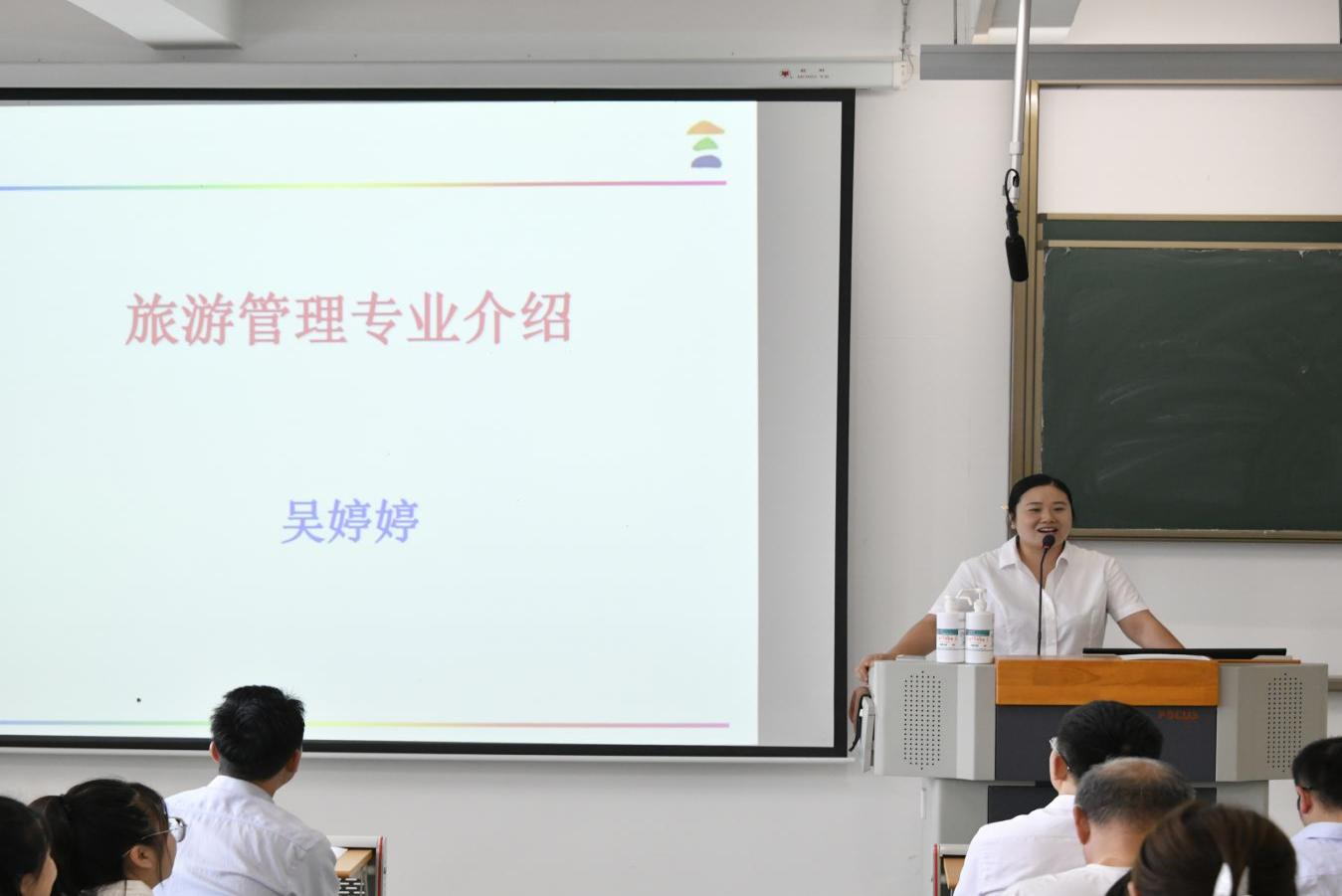 辅导员龚婷婷老师及各班班主任依次上台进行自我介绍,讲述对新生的未来发展期望。