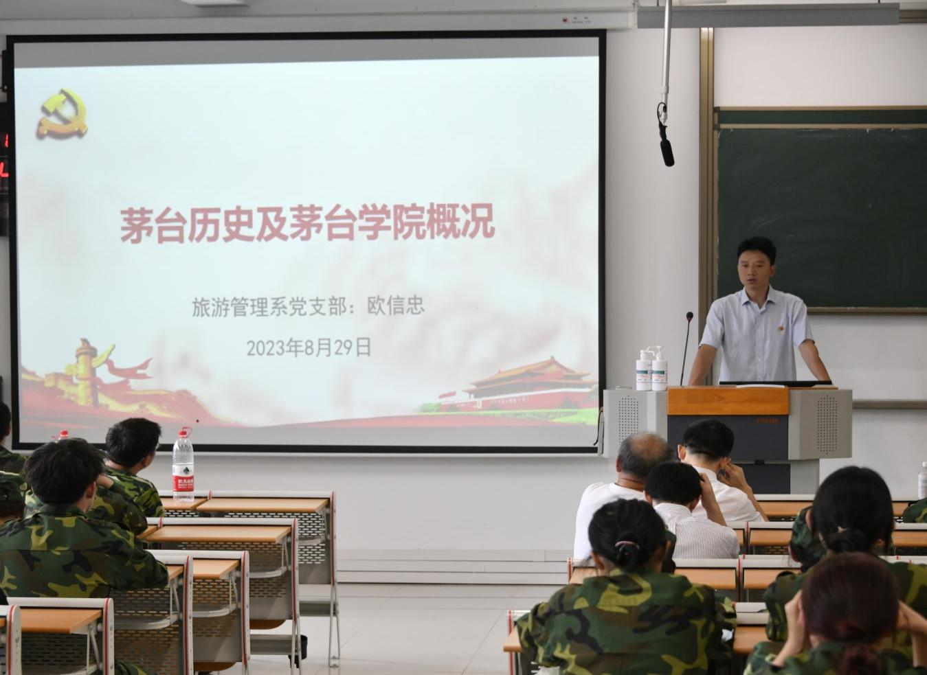 党支部书记欧信忠老师向同学们详细介绍了茅台集团、beat365正版唯一官网必一的发展历程,告诫新生尽快确定学习目标,充分利用时间,稳扎稳打,不断提升、不畏艰难,在新环境中创造辉煌人生。