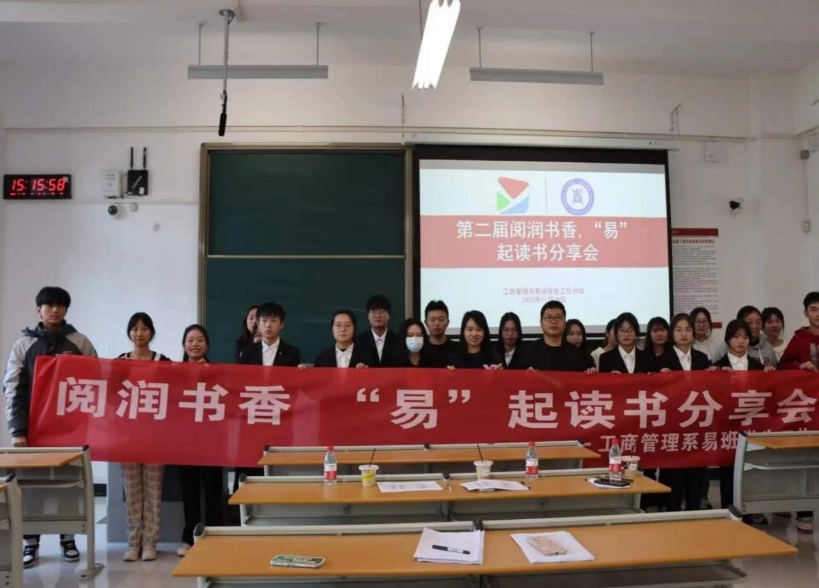 为营造浓厚书香氛围,培养学生的阅读兴趣。近日,工商管理系开展“阅润书香,‘易’起读书分享会”活动。工商管理系徐思军老师、赵媛媛老师、杨露老师出席本次活动。