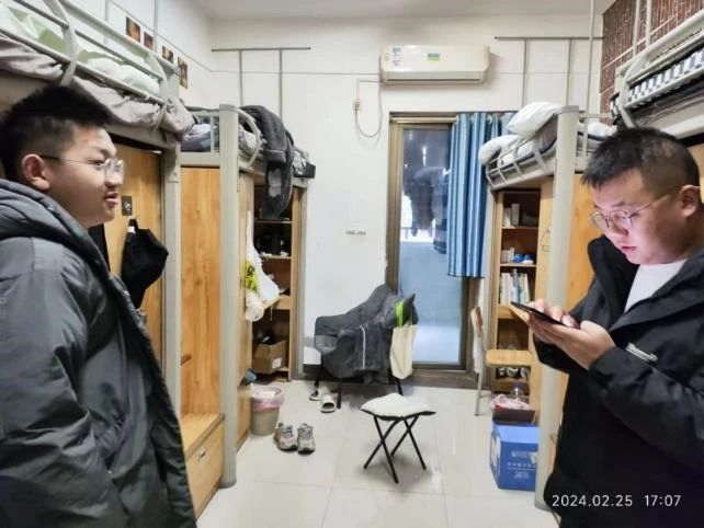 辅导员对寝室卫生、物品摆放、安全隐患等方面做了细致的检查,与同学们进行了亲切的交流,对同学们新学期的疑惑进行耐心解答,提醒同学们在寝室要相互关心,相互帮助,共同营造良好的学习、生活环境。