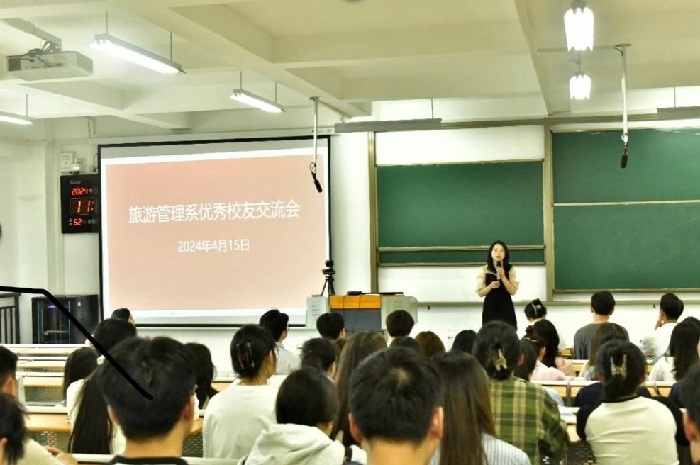 为充分发挥榜样引领作用,帮助2024届毕业生明确职业目标,有序推进就业工作。近期,旅游管理系在A1-313组织开展优秀校友交流会。会议由胡敏老师主持,旅游管理系党支部副书记吴叔娥、辅导员龚婷婷、优秀校友逯腾达、王健波、阮小叶、王绿花以及2020级全体在校生参加。