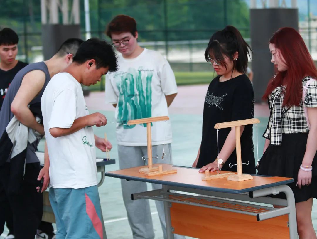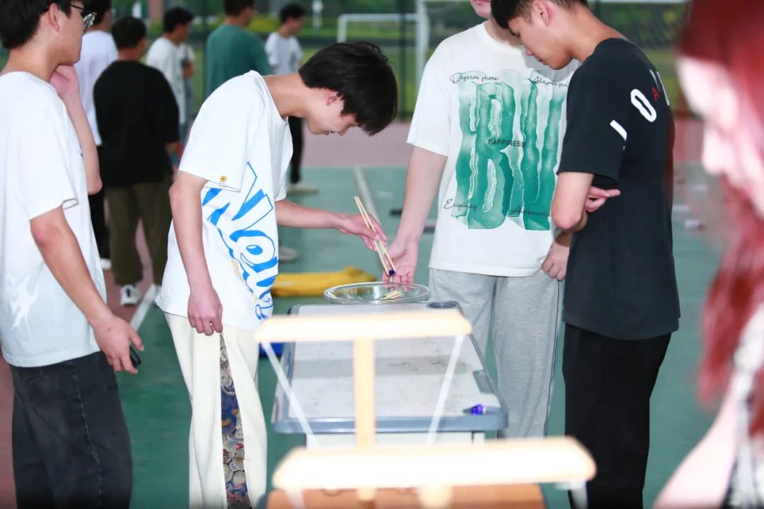 在团体赛部分,有“接力袋鼠跳”“夹弹珠”“投环挂钩”三个游戏,随着活动项目开展,成员们也渐入状态,面对不同的游戏挑战,各团队成员齐心协力,集思广益,分工协作,顺利完成了各项任务,展现出同学们敢于争先的精神面貌和积极主动的参与热情。