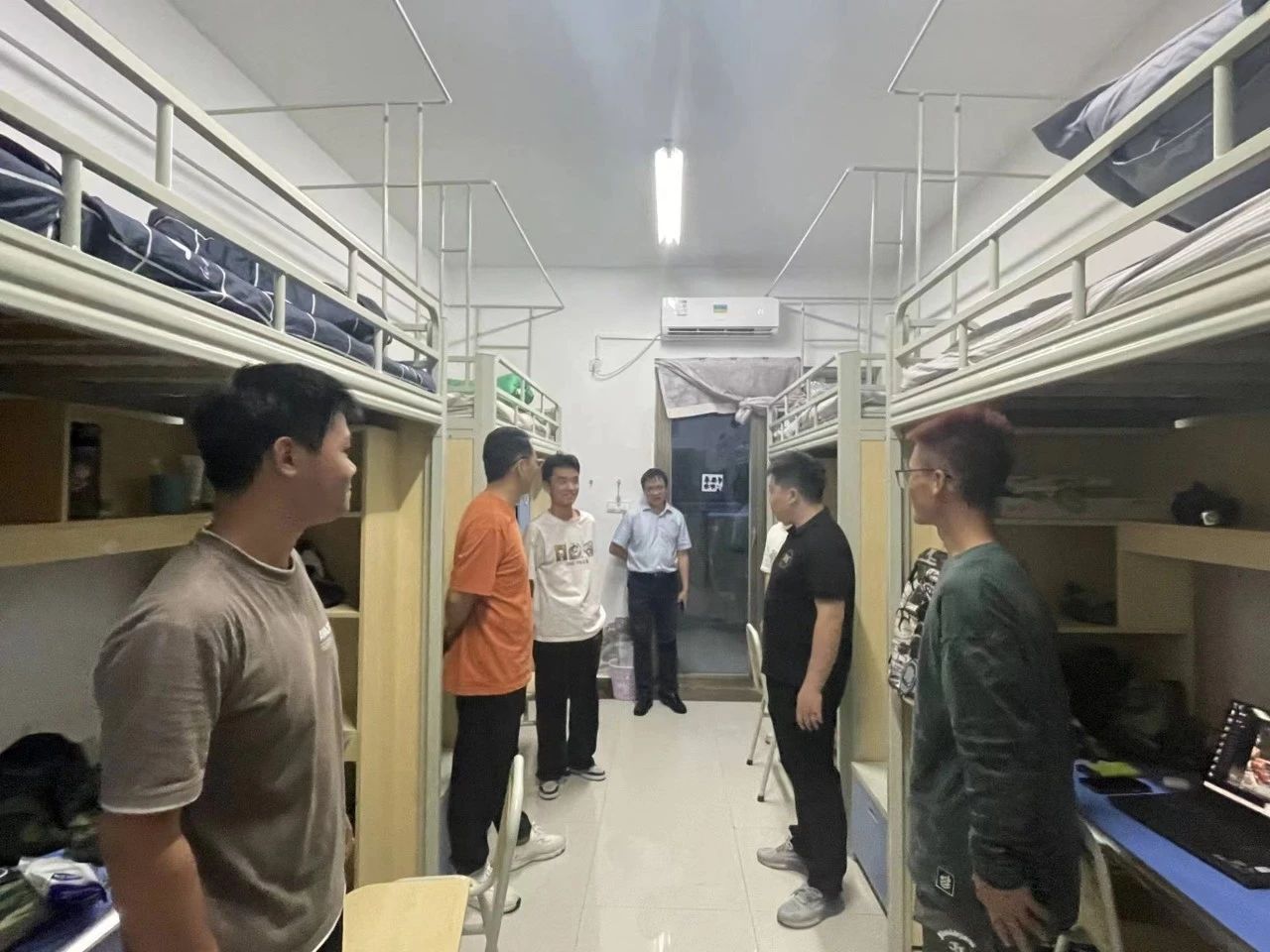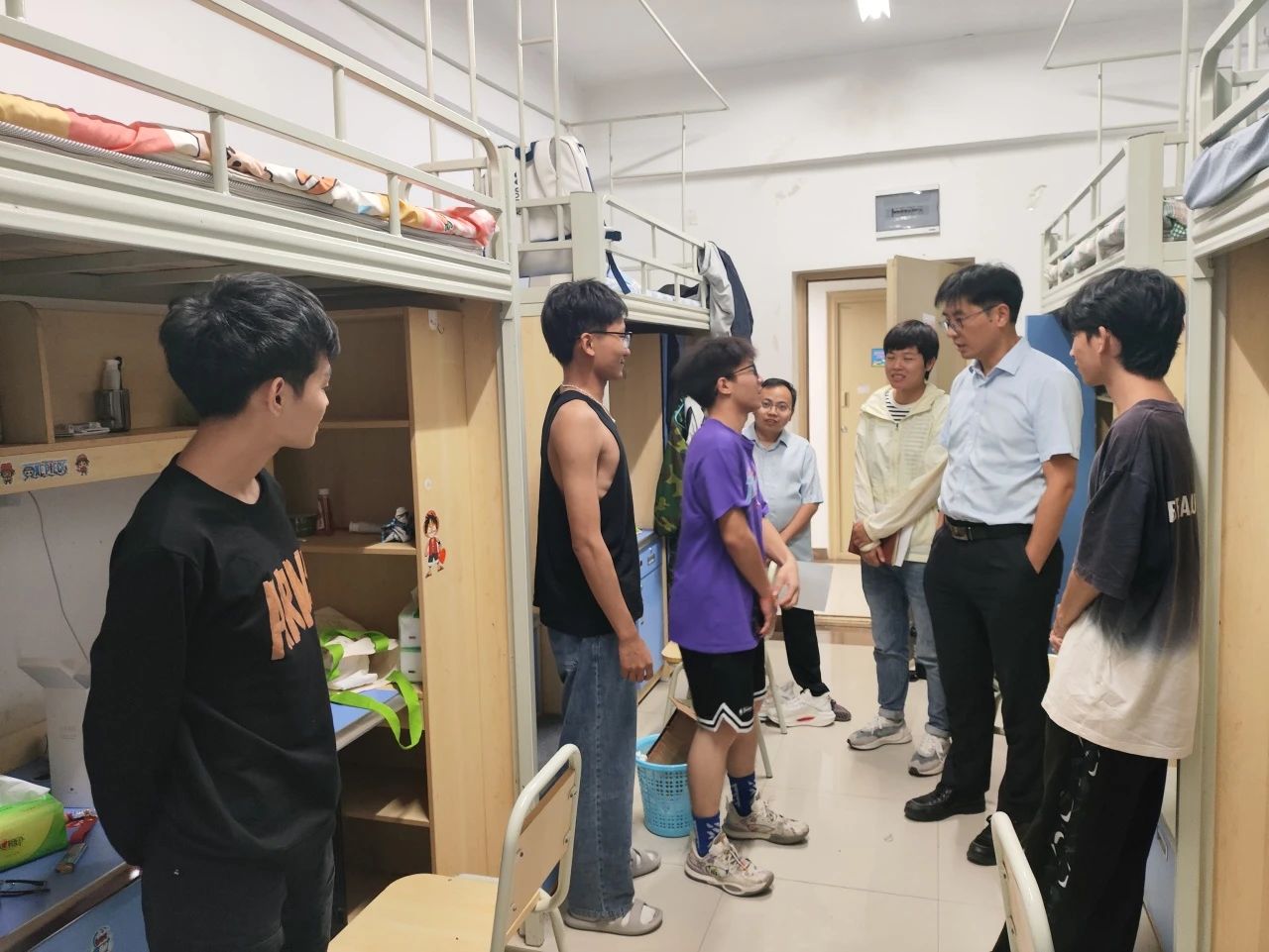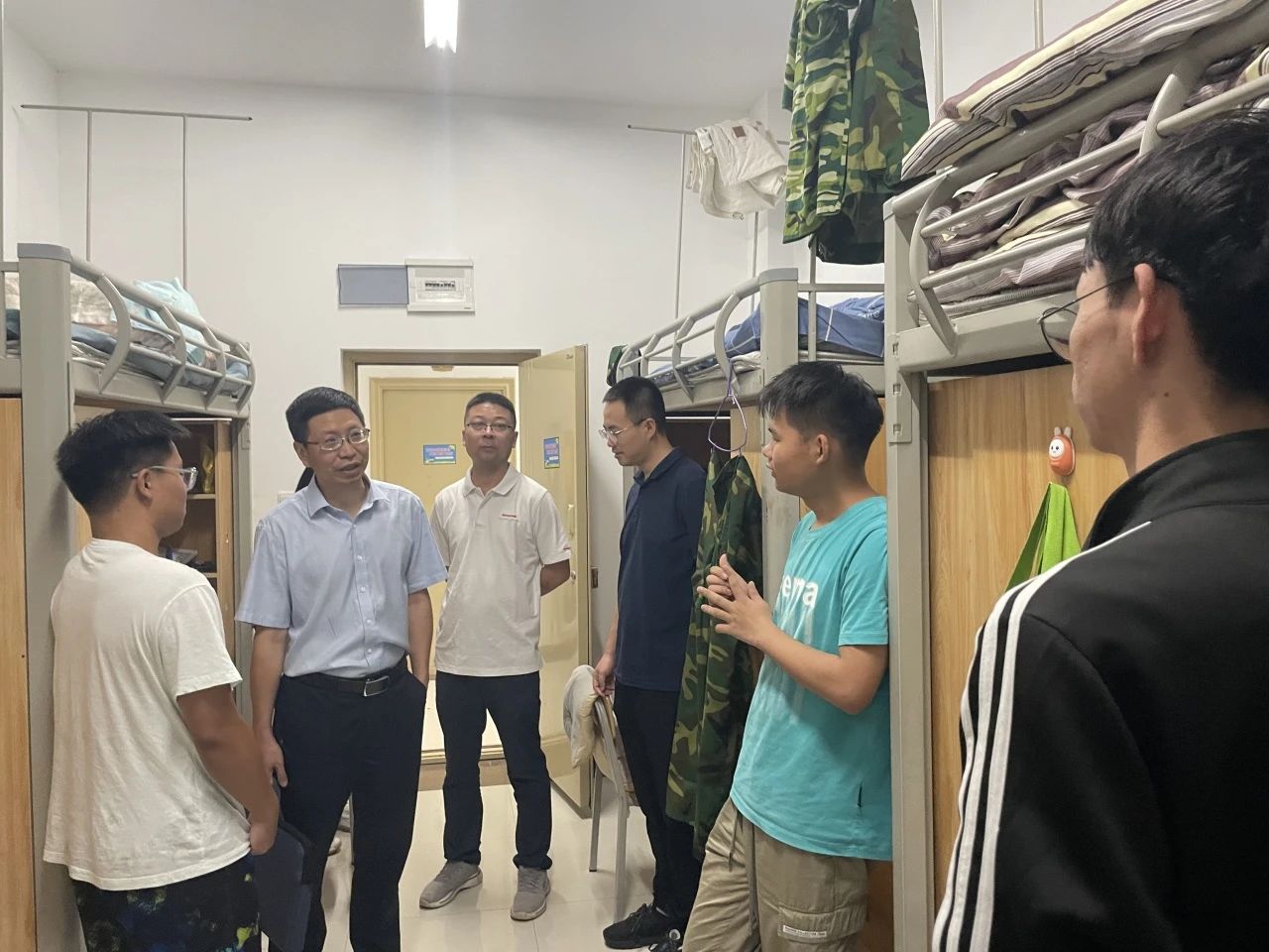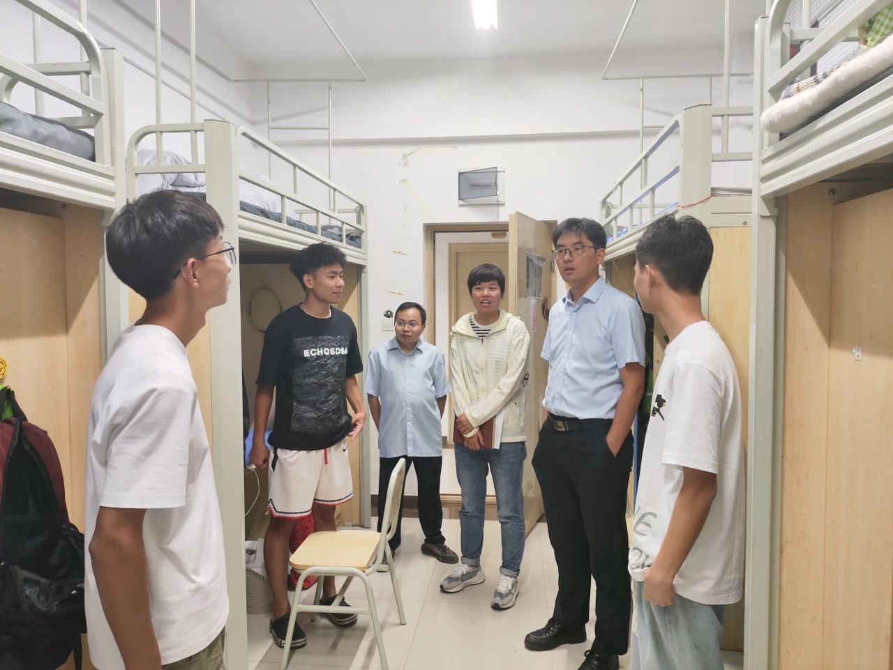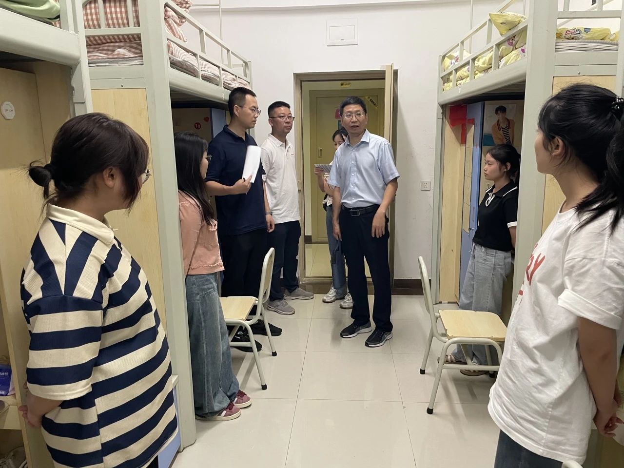 为进一步了解掌握2023级新生们的报到情况,8月27晚,校领导李增驰、邹洪芳、程庆、田戊戌、张春林及相关系负责人深入寝室与同学们面对面交流,了解同学们的入学感受和大学生活期望,在亲切交谈中引导新生尽快适应新生活、新环境。