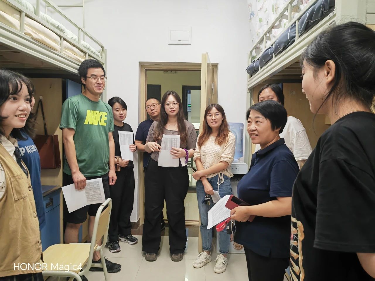学校党委委员、总会计师邹洪芳每到资源环境系2023级的新生宿舍,都亲切地与新生们进行交谈,对他们的到来表示欢迎,并仔细地查看新生的住宿环境,详细地询问了新生们的入校感受、吃住情况、是否有困难等。同时嘱托大家要融洽相处,互相帮助,本地学生应照顾好外地学生,营造良好的宿舍氛围。
