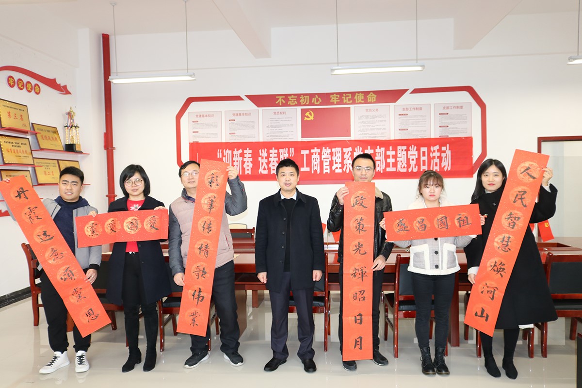 1月8日,beat365正版唯一官网必一工商管理系党支部在A1-412党员活动室开展“迎新春 送春联”主题党日活动。