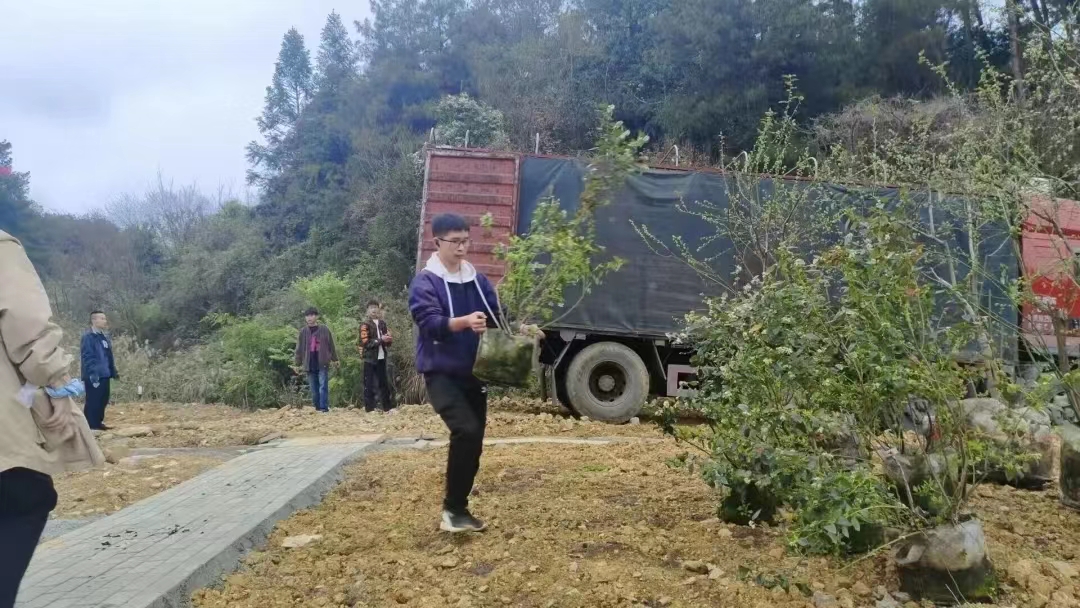 卸下卡车上的树苗和化肥,手执铁锹,挖坑栽种……整套程序在同学们的劳动下有条不紊地进行,片片绿色也随着铁锹的挥动蔓延向前,田野间的泥土裹挟着同学们的孜孜汗水,他们欣慰又自豪,纷纷表示在今后的生活中将会自觉劳动,热爱劳动,尊重劳动,不断践行雷锋精神,让雷锋精神在新时代绽放新光芒。