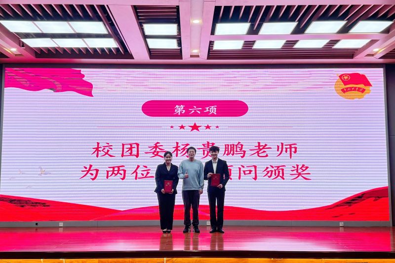 校团委杨贵鹏老师宣读第四届学生干部名单,并为他们颁发证书。