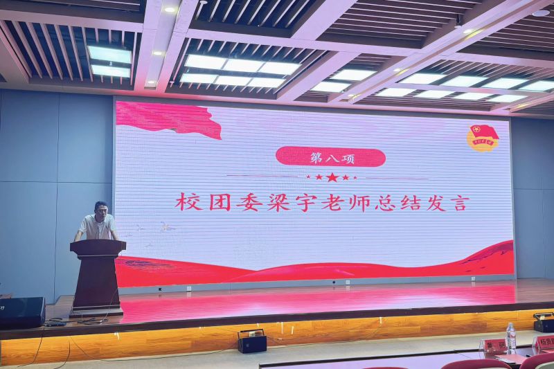 校团委梁宇老师上台作总结发言,分别从回顾过往、感恩付出和展望未来三个部分全面总结大学生艺术团过去一年的工作和所取得的成绩。向新一届大学生艺术团全体成员提出坚守初心热爱、勇于传承创新和加强团队协作的期望。号召全体大学生艺术团成员共同努力,为同学们带来更多精品表演,为校园文化注入更多的艺术活力,让艺术之花在美丽校园中绽放得更加绚烂。