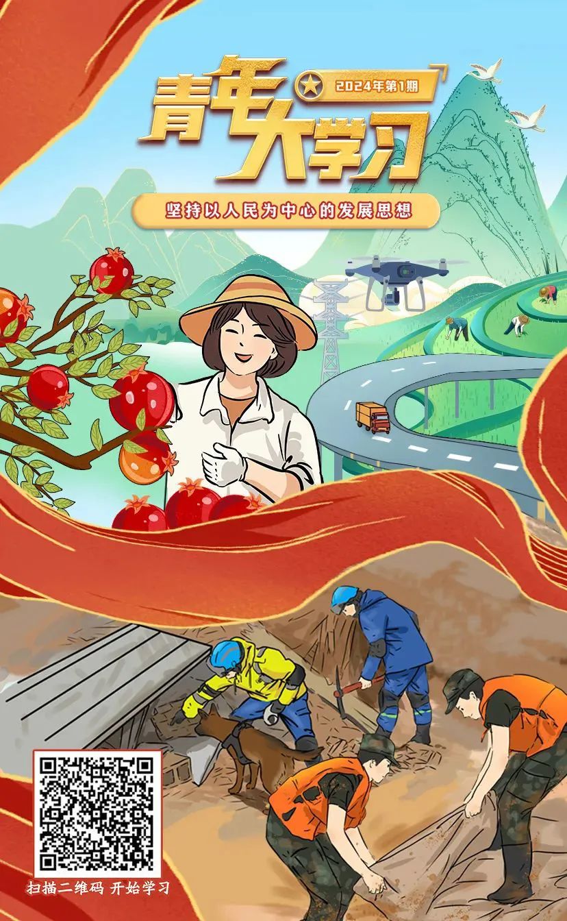 学习党的创新理论,争做新时代好青年。历史车轮滚滚向前,奋斗征程迎来新的一年。在二〇二四年新年贺词中,习近平总书记回望过去一年的步伐,展望新一年的奋斗目标,指出“我们要坚定不移推进中国式现代化”,强调“我们的目标很宏伟,也很朴素,归根到底就是让老百姓过上更好的日子”。铿锵的话语掷地有声、温暖人心,彰显人民至上的价值追求,鼓舞和激励亿万人民踔厉奋发、团结奋斗。