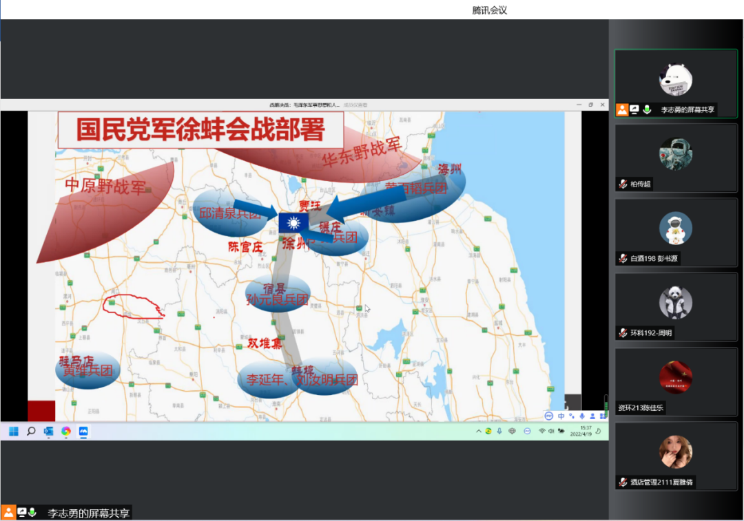 李老师从“三大战役”决战前东北战场的整体情况出发,通过具体的例子对“三大战役”进行了系统的、细致的梳理和讲解。最后,李老师从用人、管理、策略、群众路线四个层面总结了党早期领导人的谋略和智慧,引导大家结合实际合理运用。