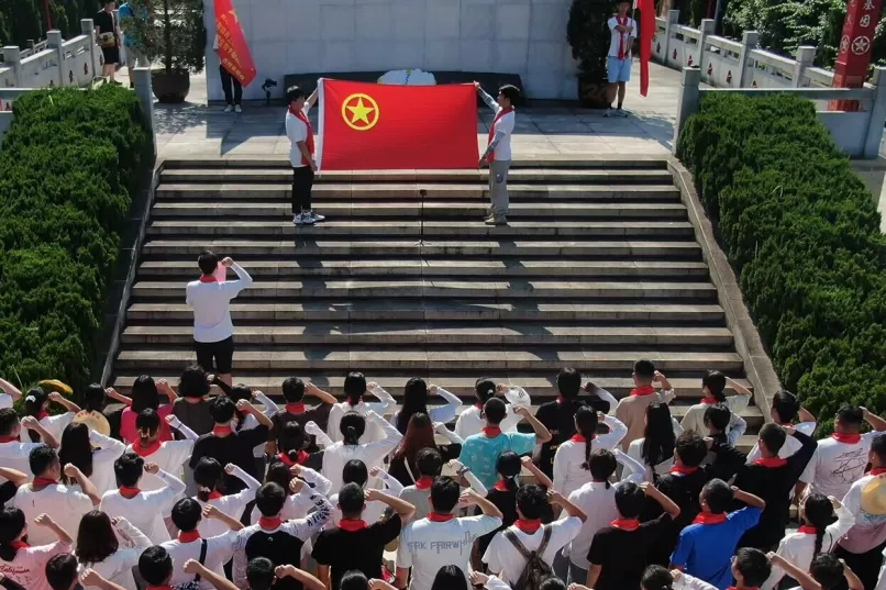 全体学员在青杠坡红军纪念碑前重温入团誓词