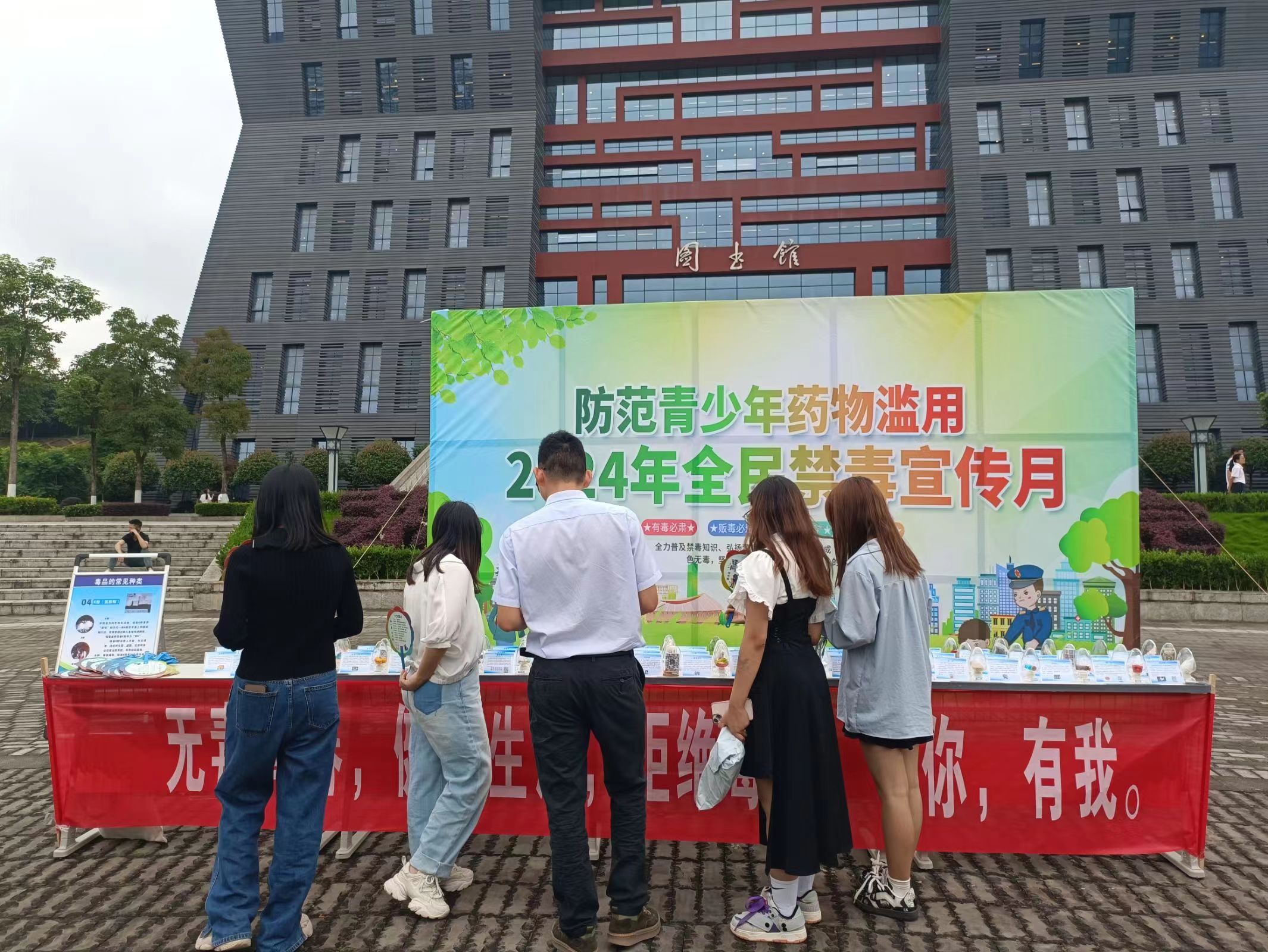 为响应国家禁毒委员会关于全民禁毒宣传的相关要求,根据学校2024年禁毒宣传月工作安排,围绕防范青少年药物滥用主题,积极提升学校师生防范涉麻精药品等成瘾性物质滥用的意识和能力,6月26日,在“国际禁毒日”来临之际,由保卫处主办的“防范青少年药物滥用”国际禁毒日主题宣传活动在图书馆前广场举行。