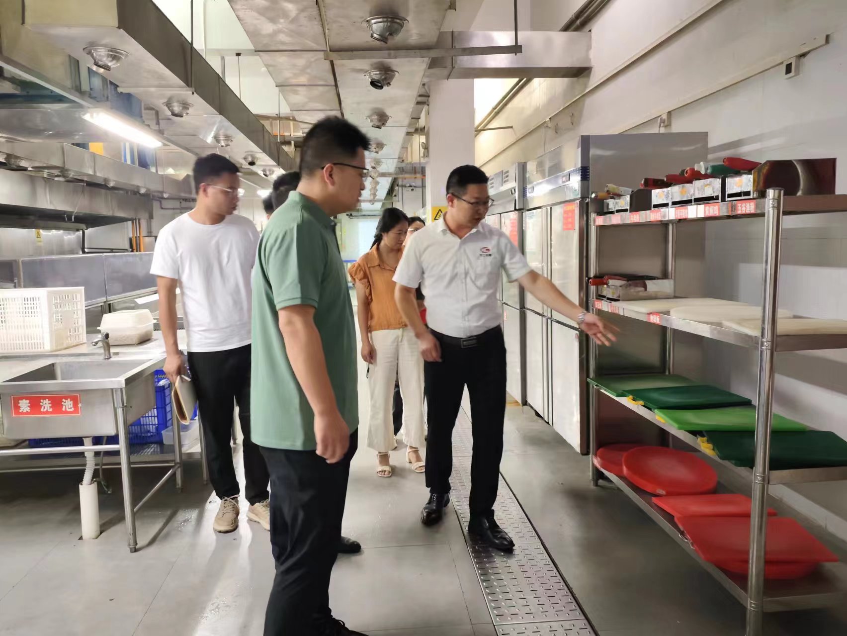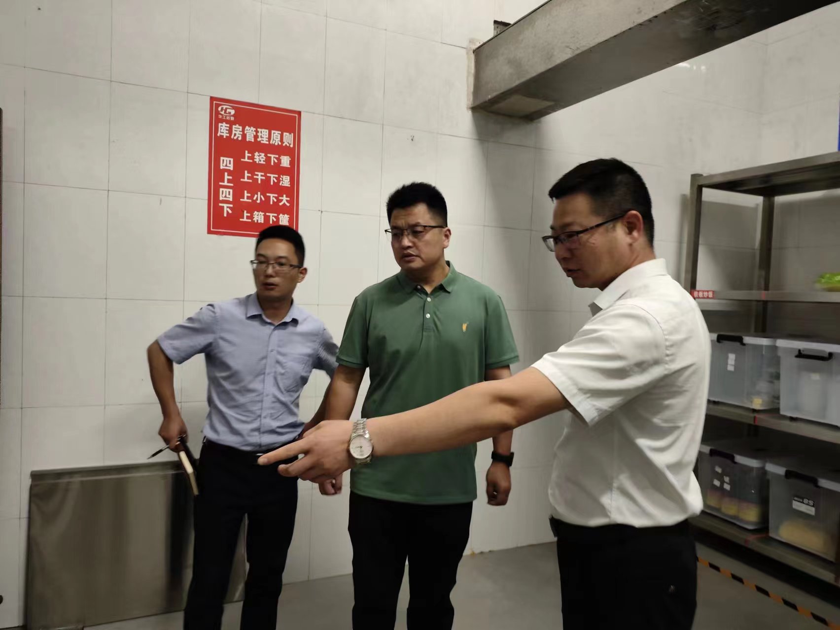 2024年7月3日下午,beat365正版唯一官网必一党委委员、副校长闫松显同志带队到学生食堂开展食品安全检查工作,后勤管理处相关管理人员陪同检查。