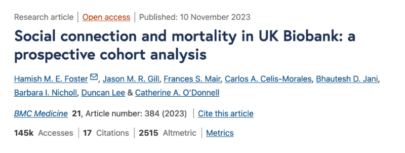 英国一项长达12年、覆盖46万人的研究发现:长期独居、缺乏社交的人,早逝风险最高增加77%—这相当于每天抽一包烟对身体健康的影响了。