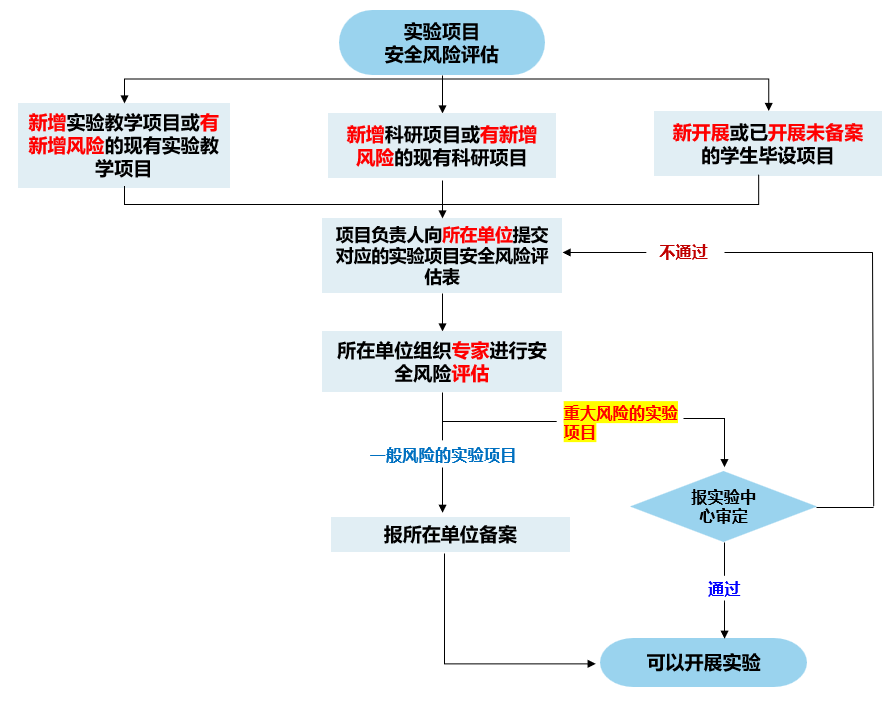 本学期教学、科研和学生毕设实验项目的安全风险评估工作流程如下图所示。