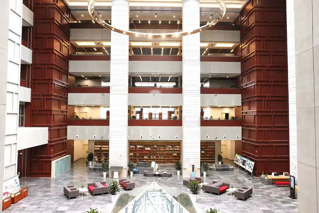 走进图书馆,缕缕书香扑鼻而来,如同钢琴键上流动的旋律。这里是一个诗意满楼、灵性涌动、生机勃勃的地方。阳光透过天井,将金辉洒落,将满楼的书照得熠熠生辉。取一本书,坐在大厅中央的沙发上,恣意享受着与知识的拥抱、与自然的共处、与世界的交融⋯⋯使人瞬间忘掉尘世,心灵得以净化,精神得以满足。