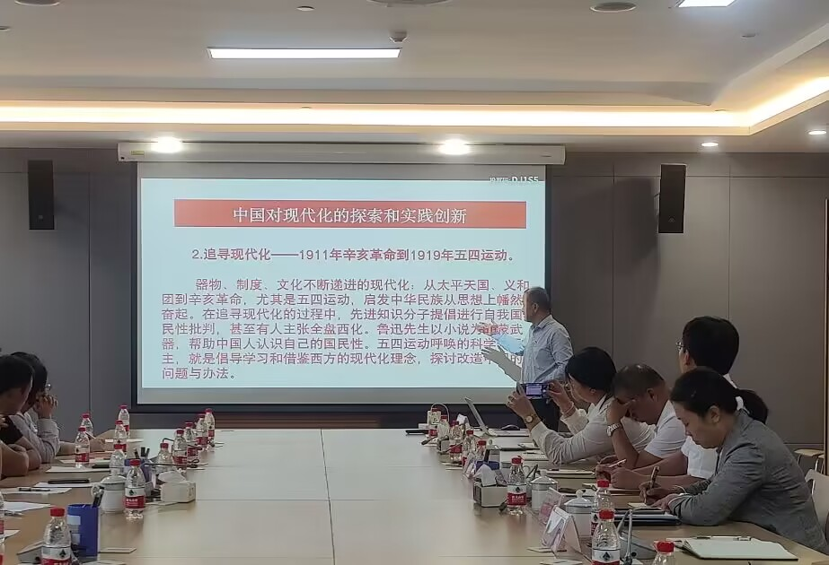 会上,遵义医科大学机关第五党支部书记付延功同志给全体参会人员上党课,以“深入学习贯彻党的二十大精神:以高质量发展推进中国式现代化”为主题,从世界现代化理论的基本内涵和历史沿革、中国近代以来对现代化的探索和实践创新、以高质量发展统揽全局、谱写中国式现代化发展新篇章三个方面展开论述。