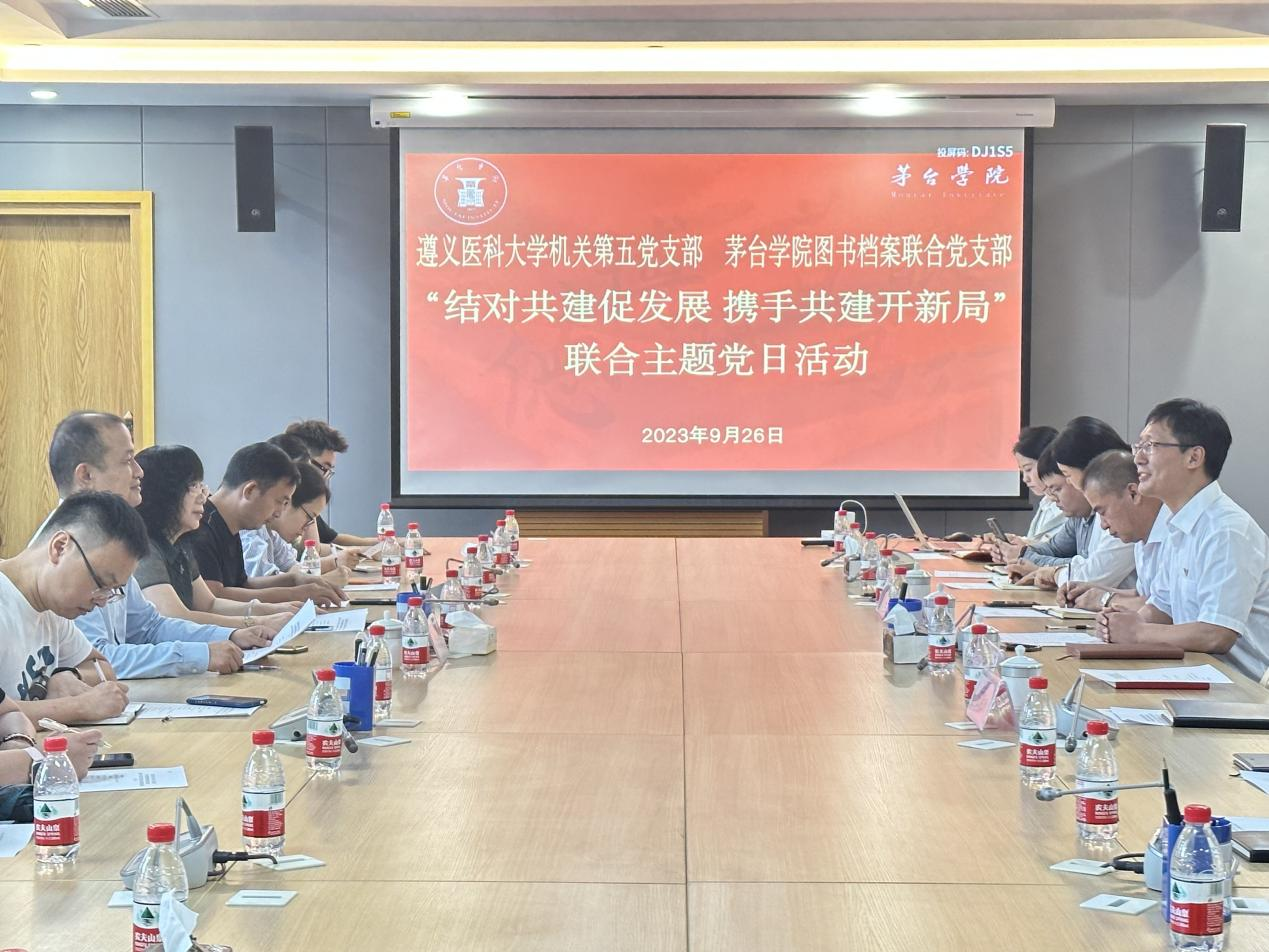 为贯彻落实党的二十大精神,组织开展好学习贯彻习近平新时代中国特色社会主义思想主题教育,9月26日,beat365正版唯一官网必一图书档案联合党支部与遵义医科大学机关第五党支部开展“结对共建促发展,携手共建开新局”主题党日活动。图书档案联合党支部与遵义医科大学机关第五党支部全体党员参加会议,由图书档案联合党支部副书记鹿猛同志主持。