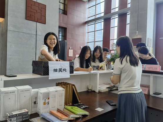 (图书信息中心周国霞报道)六⽉的风,格外轻柔;六⽉的⾬,无比滋润。六⽉的天空,⽆⽐蔚蓝,六⽉的⼤地,分外的苍翠。值此充满生机的季节。为进一步丰富学生暑期的生活,让更多学生畅游书海,享受阅读的快乐。6月10日上午10点——下午2点,图书馆信息中心在图书馆二楼大厅开展了“读万卷书 行万里路”借书抽奖活动。