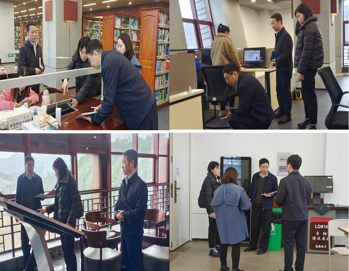程庆副校长首先详细了解图书馆各楼层的硬件设施情况,如:借还书机、查询检索机、电子阅览室设施、自助打印机、手机充电站等设备,详细了解其种类、数量、分布及具体使用情况,针对目前打印机无法使用,手机充电站更新慢等存在的问题,要求图信中心及时与相关部门做好沟通协调,按需升级换代,确保各设备能满足学生的学习需求,为读者提供更好更优质的服务。