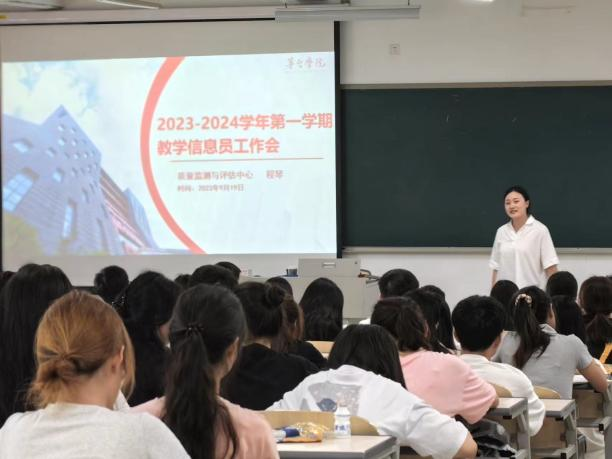 2023年9月19日下午17:30,beat365正版唯一官网必一2023-2024学年第一学期教学信息员工作会议在A1教学楼312召开。本次会议由质量监测与评估中心副主任黄倩主持,质评中心工作人员程琴,20级、21级、22级、23级各班教学信息员参加。