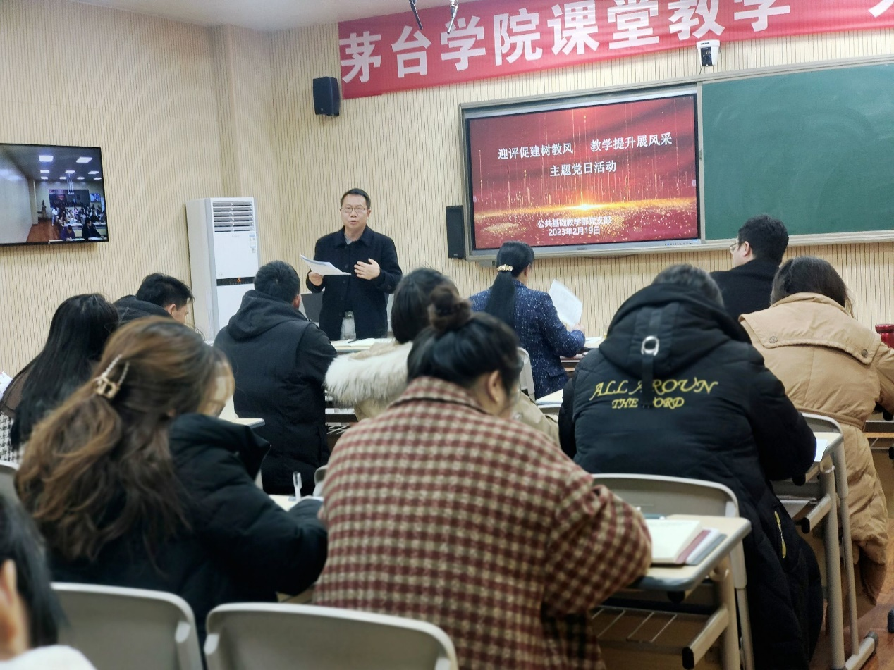 为深入学习贯彻党的二十大精神,把全体教职员工思想和行动统一到党的二十大精神上来,2023年2月19日下午2:30。公共基础教学部党支部开展了“迎评促建树教风,教学提升展风采”主题党日活动。