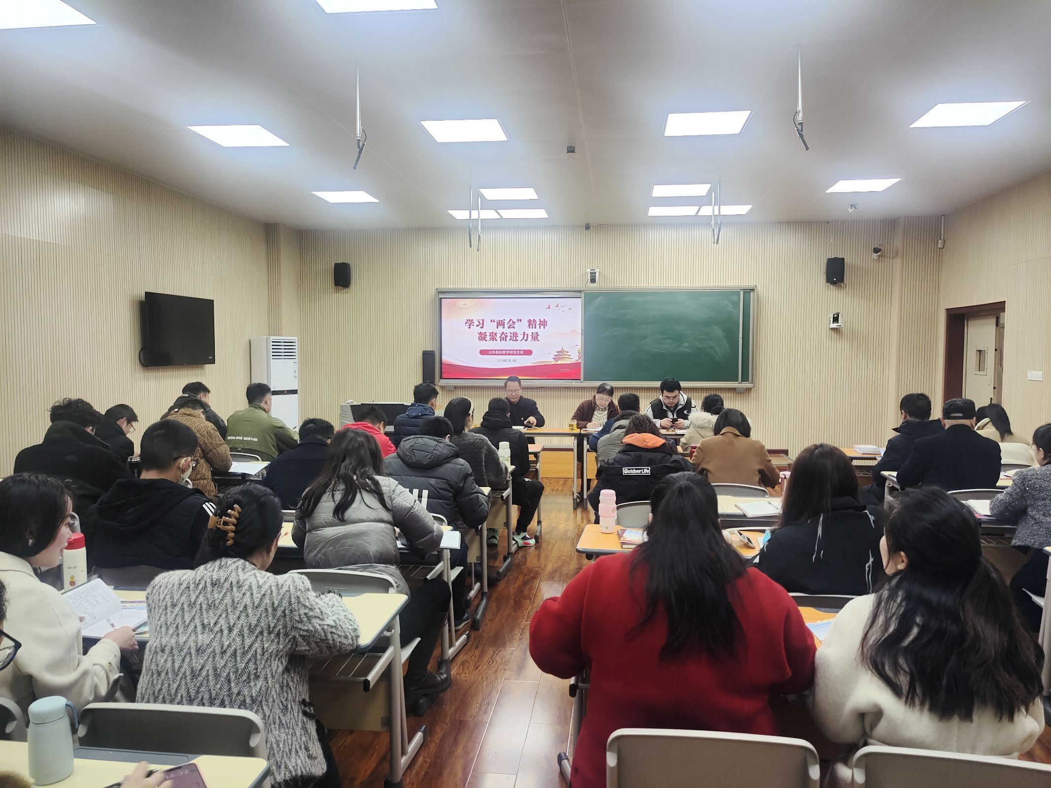 3月4日—5日,全国两会在北京人民大会堂隆重开幕,这场盛会举国关注,举世瞩目,公共基础教学部党支部全体教师对两会胜利召开热切关注,大家通过多种途径收听、收看两会盛况,认真学习两会精神,结合自身学习、工作和生活实际,畅谈感想体会。