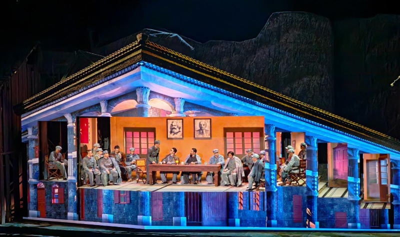 当大幕拉开,历史的画卷在眼前徐徐展开,仿佛瞬间被带回到了那个波澜壮阔的年代。硝烟弥漫的战场、简陋的指挥部、崎岖的山路等,都让人仿佛身临其境。