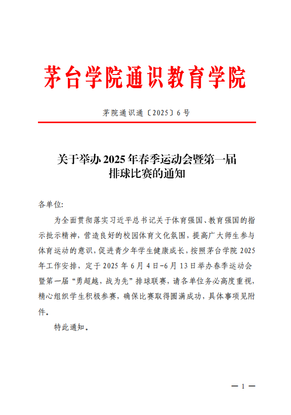 关于举办2025年春季运动会暨第一届 排球比赛的通知