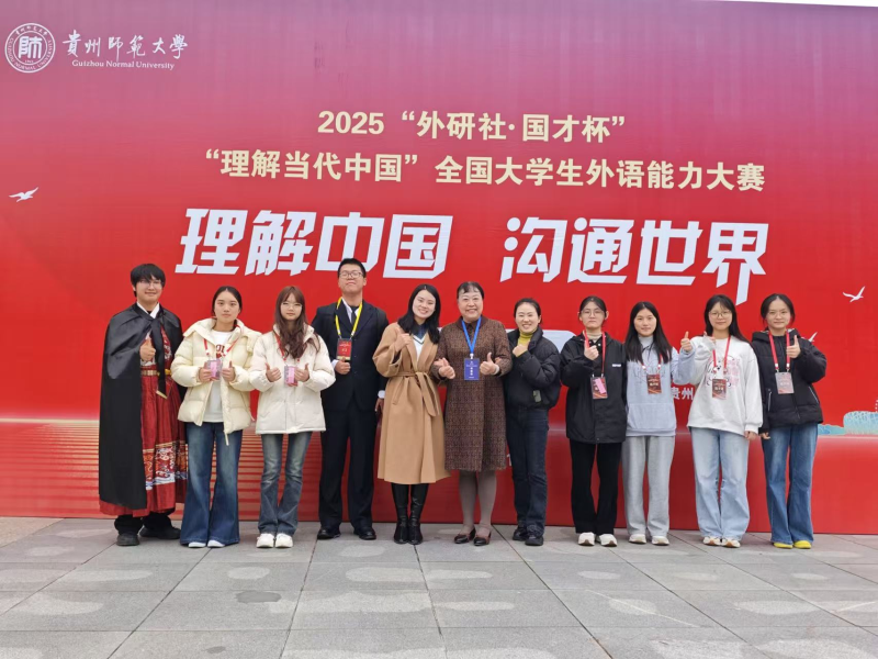 为深入贯彻党的二十大精神,深化高校外语教学改革,提升外语人才培养质量,2025年11月1日,2025“外研社·国才杯”“理解当代中国”全国大学生外语能力大赛贵州省复赛在贵州师范大学圆满落幕,该赛事由贵州省教育厅主办、贵州省大学外语教学研究会及外语教学与研究出版社协办,吸引了全省29所高校的选手同台竞技。