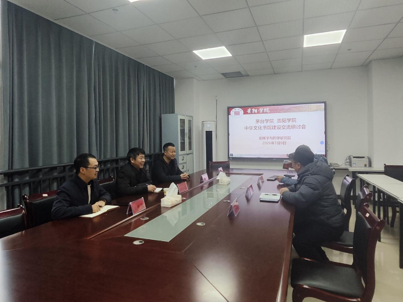 2026年1月9日上午,筹建工作组到贵阳学院中华文化书院(贵阳学院阳明学与黔学研究院)进行学习考察,实地走访了阳明文化馆,对阳明文化馆成立背景、组织结构、人员构成、建设现状、作用及文化影响作了全面的了解。座谈交流中,结合“马院+书院”建设,贵阳学院中华文化书院院长刘继平与任健副院长从贵阳学院中华文化书院的创立历程、组织机构、师资队伍、课程建设与科研成果及文化传播与实践、思政一体化、建设规划和前期的建设成果等方面进行了介绍。随后,双方聚焦中华文化书院空间建设、课程体系构建,传统文化与通识教育融合等方面进行了交流。