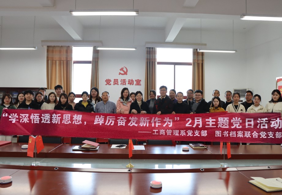 为深入学习习近平新时代中国特色社会主义思想,全面贯彻党的二十大精神,把党的二十大提出的一系列战略部署“内化于心、外化于行”,营造“比学赶超”的学习氛围。2023年2月28日下午,工商管理系党支部、图书档案联合党支部在工商管理系党员活动室(A1-410)举行了“学深悟透新思想,踔厉奋发新作为”主题党日活动,教师党员、学生党员共同参与此次活动。