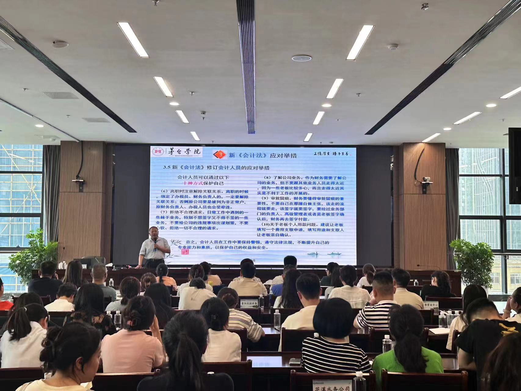 为增强财会人员风险意识,进一步规范公司会计行为,提高公司会计信息质量,防范各类财会工作潜在的违法违规风险,7月26日,工商管理系田景仁教授受邀为贵阳水务环境集团有限公司举办新修订《中华人民共和国会计法》解读专题讲座,80余名财务负责人及财会人员聆听讲座。