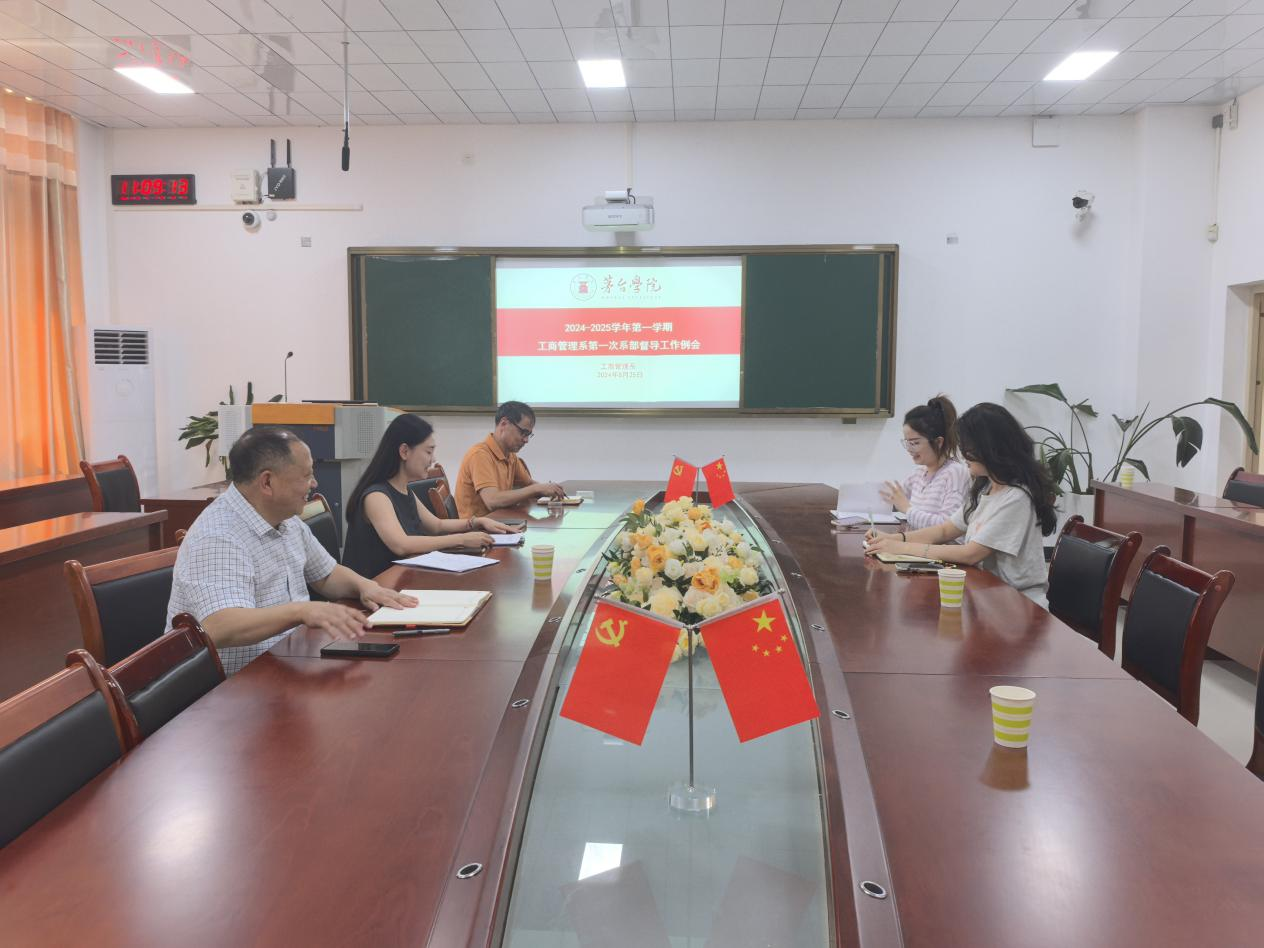 为确保新学期的教学工作能够顺利进行,持续提升教学质量,8月25日,工商管理系在423会议室召开了2024-2025学年第一学期首次系部督导工作例会,会议由工商管理系副主任马青主持,全体系部督导参会。