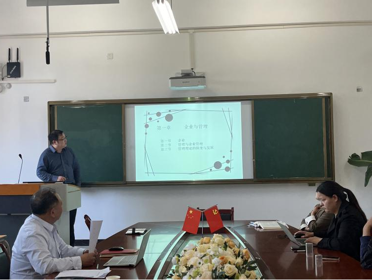 10月31日,工商管理系在留芳楼423会议室开展新上课、上新课教师试讲工作。系部督导田景仁、彭必源、谢文锦作为评议小组成员出席会议。